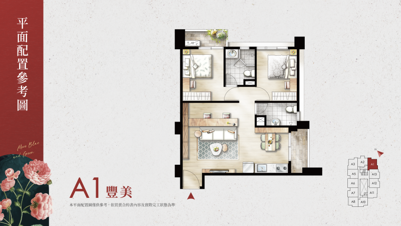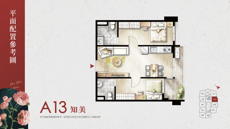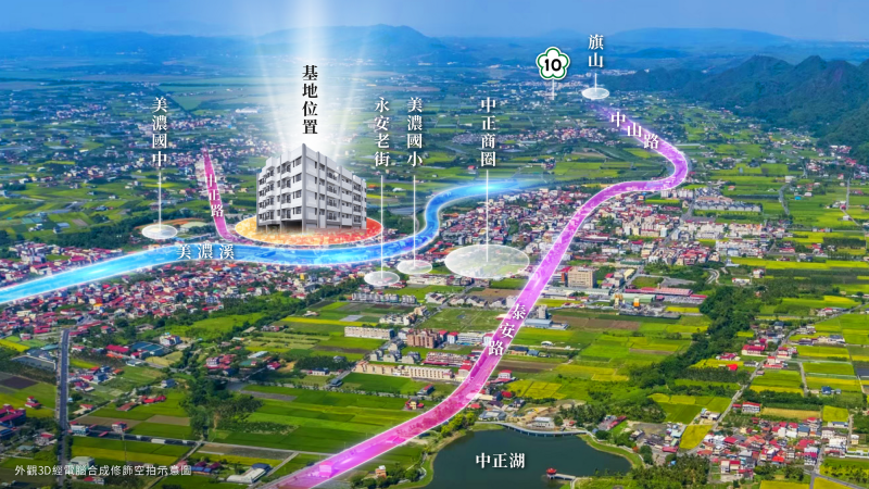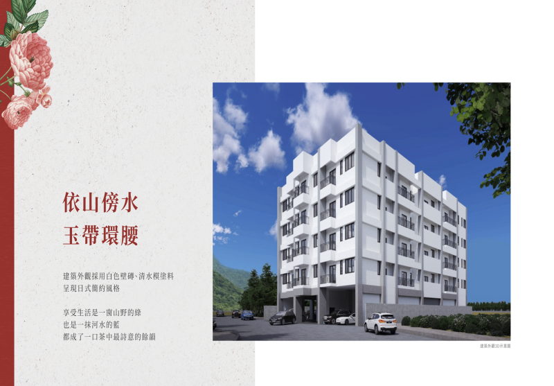 美濃溪河岸景觀首排! 規劃住家44戶,格局坪數規劃二房(約21~25坪) 、 二+1房(約27坪)。