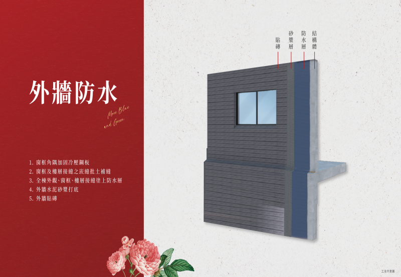 建築外觀採用白色壁磚及清水模塗料,呈現日式簡約風格,結構外牆亦提供全棟防水,降低未來滲漏風險。